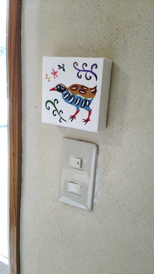 紅型染めミニファブリックパネルのインコちゃんバージョンです。