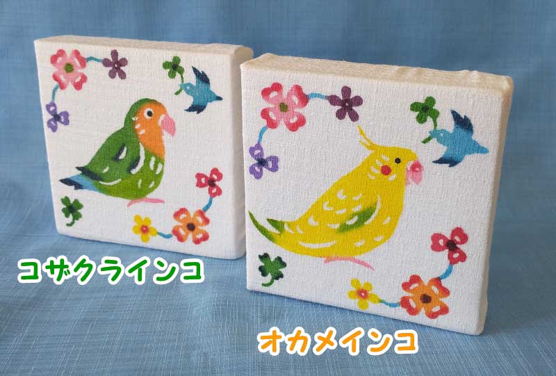 【受注製作】4柄セット:インコ柄ミニファブリックパネル