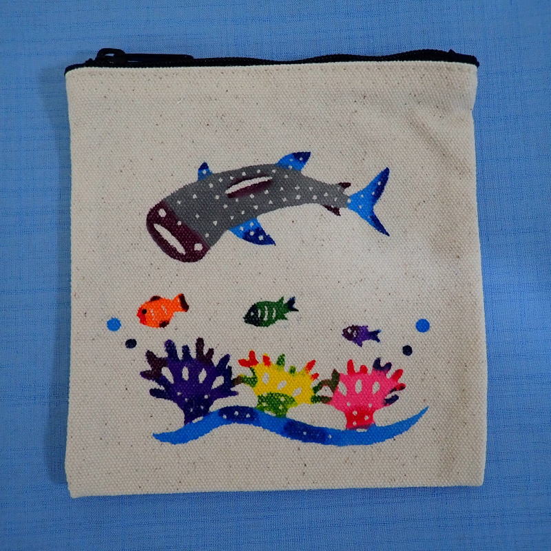 紅型染めミニファスナーポーチ・ジンベエザメ柄